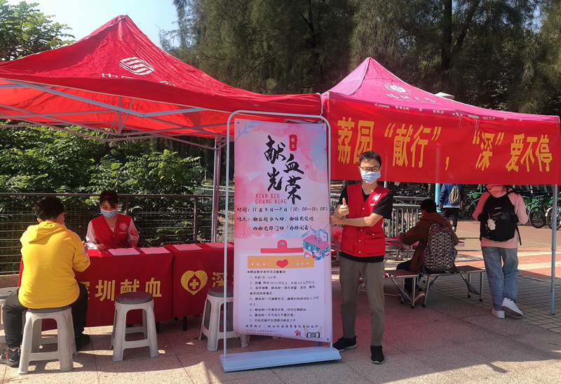 运动广场这边,献血车一停,红色帐篷一支,再整齐地摆放两张桌子、几把椅子,就搭建好一个献血招募台了~义工伙伴们卖力地指引童鞋们“献血前的正确打开方式”~