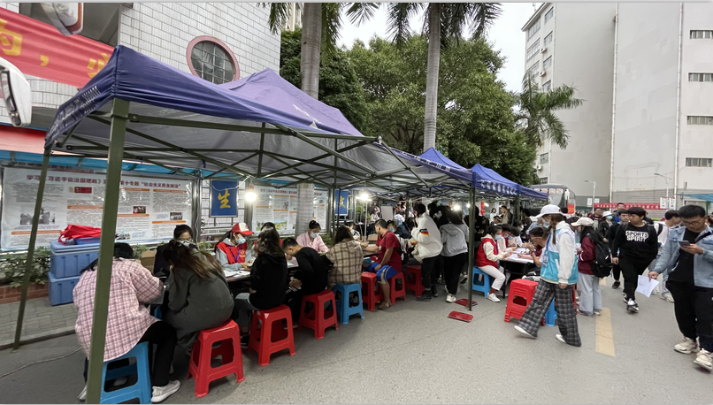 2020年11月26日下午右江民族医学院“以青春的名义传承奉献美德”为主题的无偿献血活动拉开帷幕,一股无偿献血的爱心热潮在右医校园内澎湃而起。