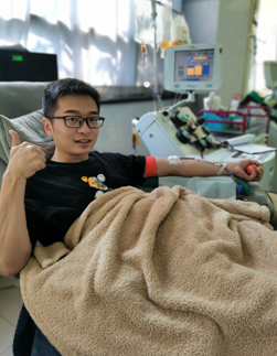 在2018年年底,他无意中得知到血液中心可以捐献成分血——单采血小板,而且献血小板的间隔期只需2周,于是,他只要捐献间隔期一满,便抽空来献血小板:“去的次数多了,慢慢的我发现血液中心采血的老师们都好可爱善良。来到这里和她们闲聊几句,烦恼都会烟消云散。所以血液中心(桂花园分部)除了是我定期的献血点以外,也是我心灵的避风港。我近两年算是在频繁地与血液中心打交道,我想趁自己有时间、有条件就尽量坚持去做这件事,可能也是为了自己心里那份自豪感。不过不管为了什么,至少我做到了问心无愧!”
