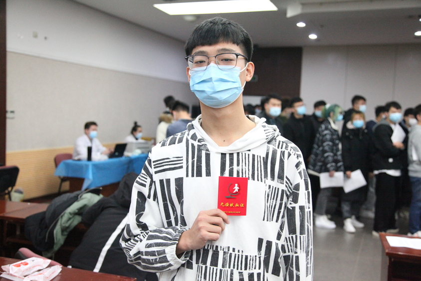 在领取到献血证后脸上洋溢着灿烂的微笑。