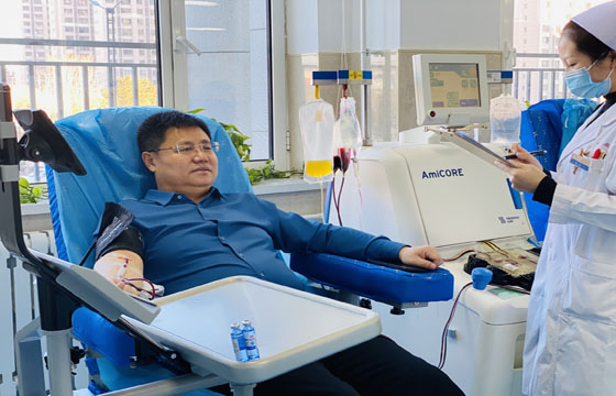 赤峰市中心血站党支部书记、站长王鹏坤,发挥党员先锋模范作用,带头捋袖捐献机采血小板。在他的带领下,赤峰市中心血站全站职工