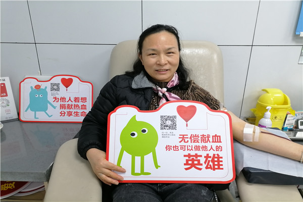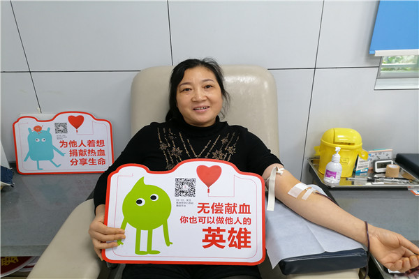 在攸县火车站经营茶馆的粟红卫走进了爱心献血屋,这是粟大姐第18次献血,她已累计献血总量6300毫升。“我曾因生意失败欠下债务,后卖房还债,还做了单位食堂的帮厨。当时,很多人向我伸出过援手,助我渡过难关。”粟大姐说:“我觉得人要懂得感恩,大家帮助我,我也要回馈社会。我身体健康,就想用献血的方式来尽一份力。”