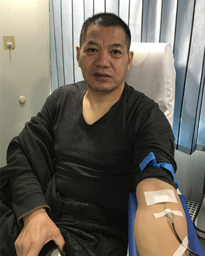12月2号早上,周成荣冒着风雨前往宝应采血点献血车准备捐献全血,经过采血前的检查,符合标准后,周成荣坐在了采血椅上,熟练地挽起袖管,让医护人员消毒、扎针。