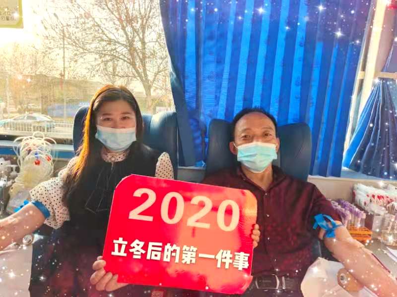 2020年11月13日,徐付引夫妇再次携手到流动捐血车奉献自己的爱心血液。