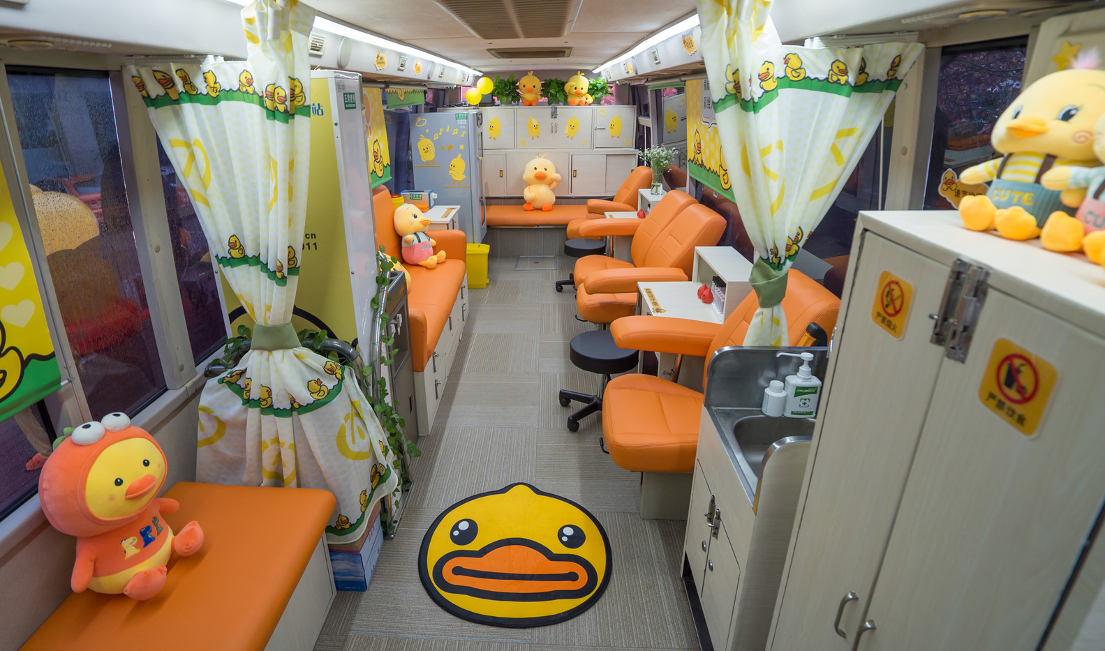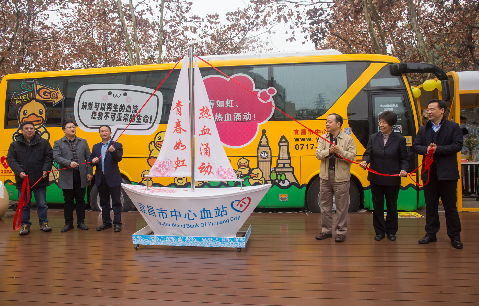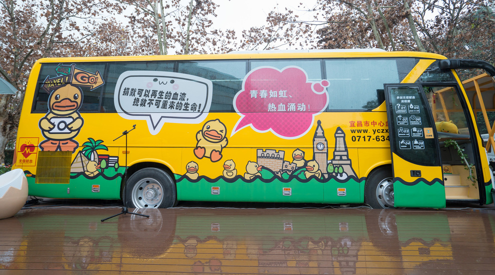 今年8月,宜昌市中心血站在官方微信平台发起“三峡大学爱心献血车形象设计”投票,“小黄鸭”主题爱心献血车高票获选。今后,宜昌首台主题献血房车将常驻三峡大学,成为点缀美丽校园的又一道靓丽风景。
