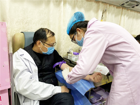 活动现场,报名献血的医务人员早早来到献血车前,完成登记填表、化验采血等准备工作后,身体检查合格的医务人员纷纷卷起衣袖,捐献出自己的一份热血。