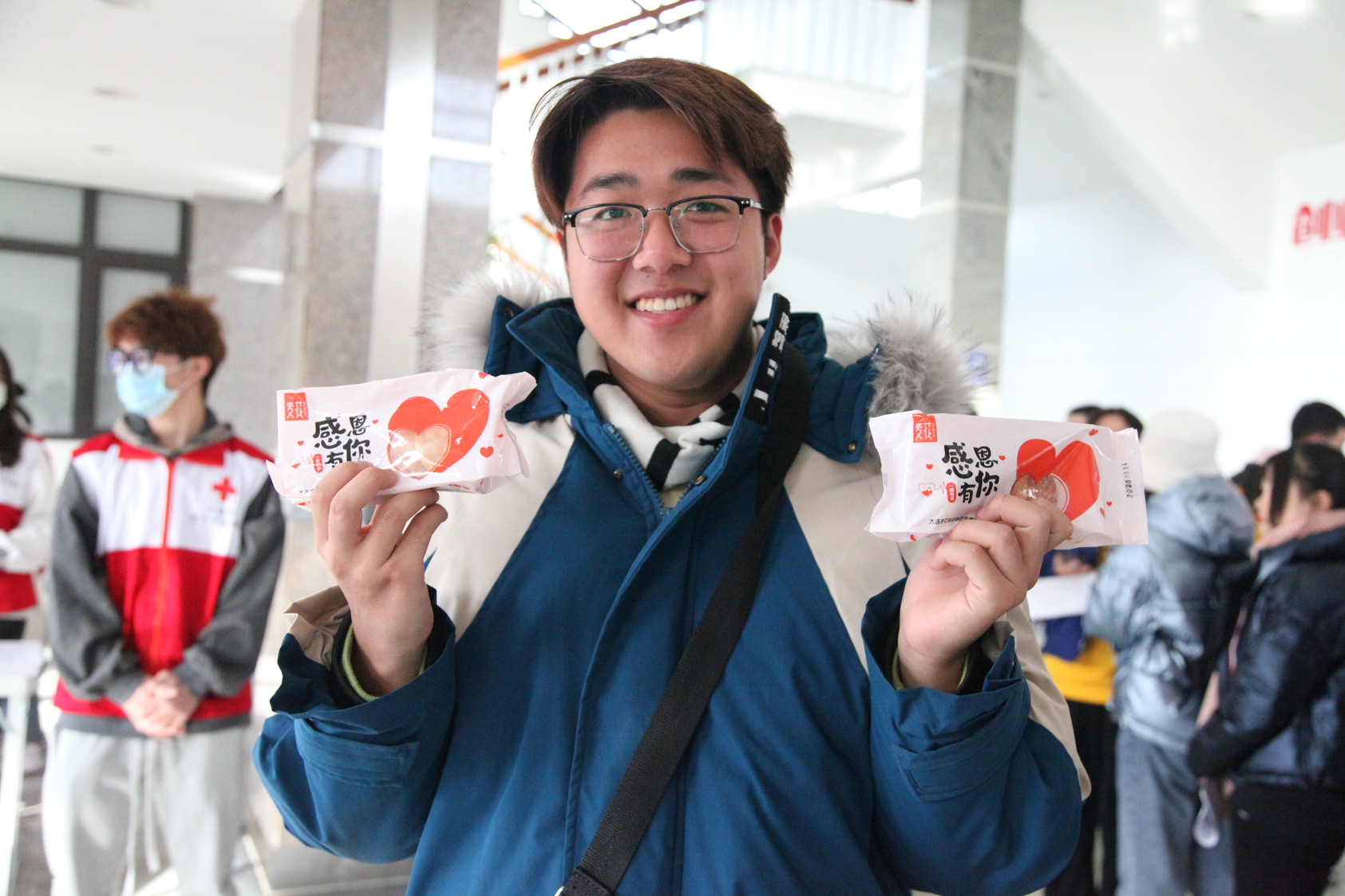 献血的同学中,很多都是来自大一的新生,他们在献血过程中的表现,能让我们真实地感受到他们内心那份勇敢,王俊琦便是其中之一,献完血后他开心地和同学们分享着献完血后的感受:“长这么大,终于知道自己血型了。有礼物,更有光荣的献血证,血液中心的饼干真的太好吃啦!”