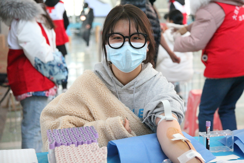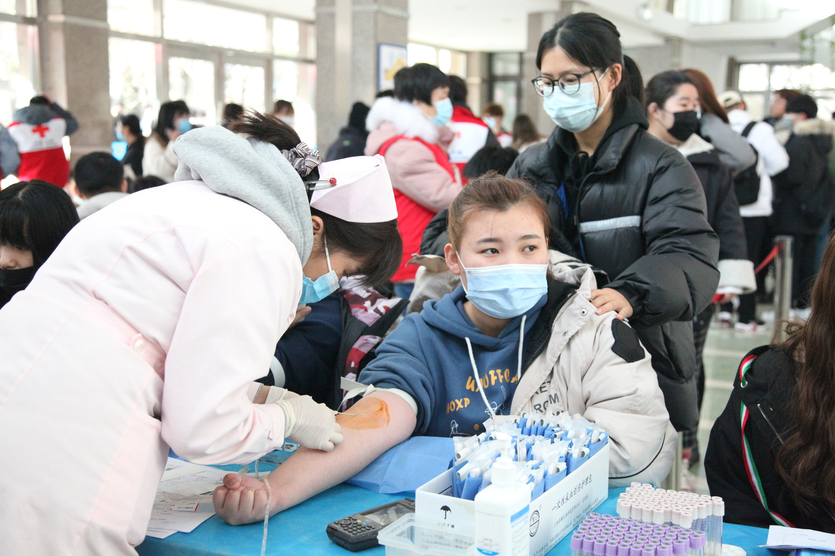 大连工业大学红十字会学生分会的志愿者们也是满腔热血,在采血现场配合医护人员工作,缓解同学们的紧张情绪,不时地询问同学们的身体情况,维持现场秩序,以实际行动树立了乐于助人、奉献社会的榜样力量。