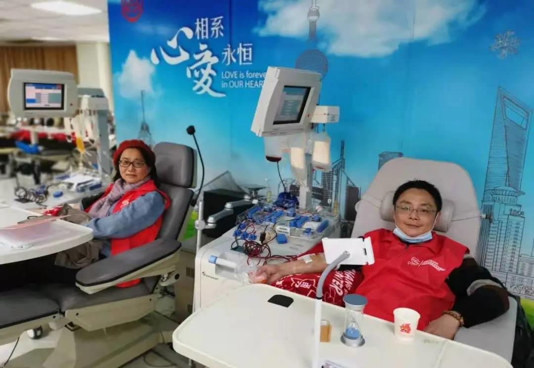 完成血小板捐献后,稍作休息,郭威(右)和长宁区无偿献血宣传招募服务队俞老师(左)一起来到虹桥艺术中心爱心献血车,做起了无偿献血宣传招募。本次活动虹桥艺术中心献血量高达7400ml,20位志愿者共捐献37人份鲜血,为本次活动划上圆满的句号。