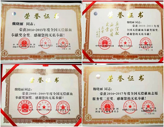 “作为一名曾经的军人、一名党员、一名血液工作者,只是希望用自己的行动践行一份初心和使命,能够影响更多的人加入到爱心奉献的队伍中来,这是自己的一份爱,更是自己的一份责任。”魏晓丽说。