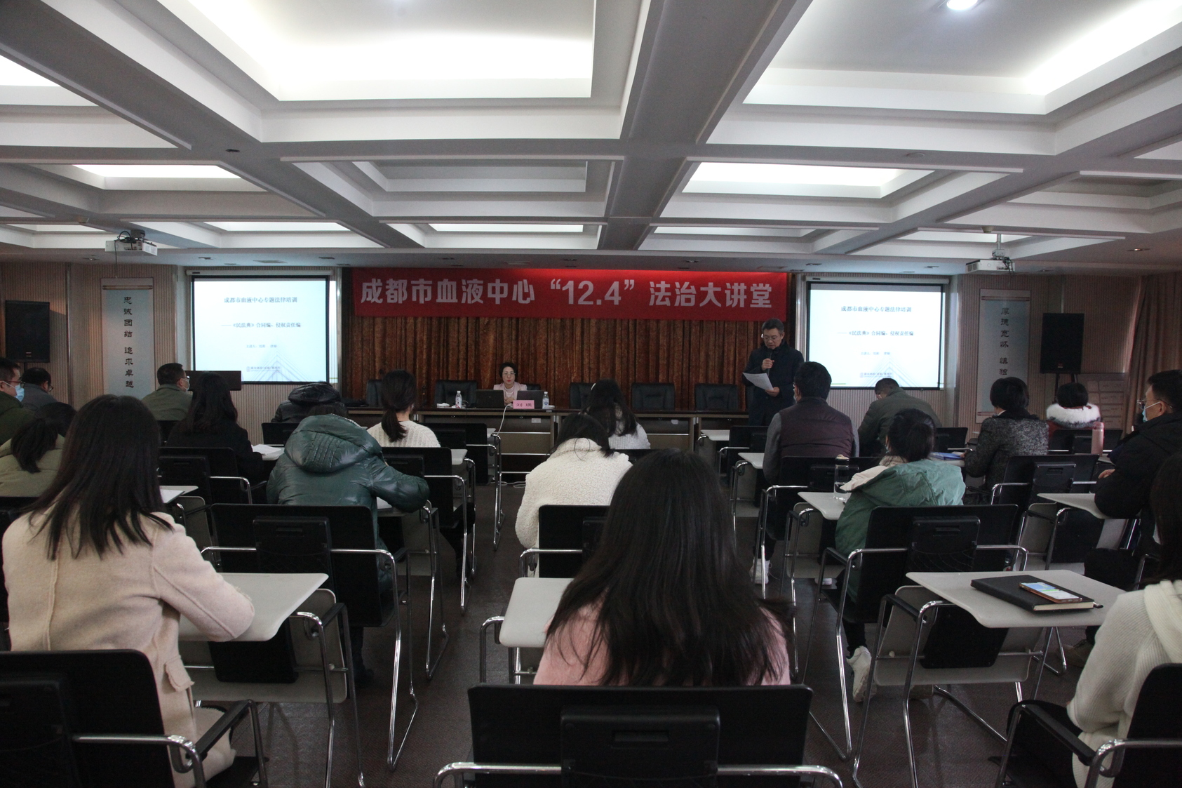 为深入贯彻习近平总书记“广泛开展民法典普法工作”的重要指示精神,按照市卫健委相关工作要求,12月11日下午,成都市血液中心举办了主题为宣传贯彻民法典的“法治大讲堂”集中普法学法活动,近50名干部职工参加学习。