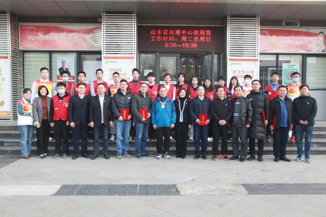 参加活动的有山东省血液中心副主任李蓬、齐鲁工业大学(山东省科学院)能源与动力工程学院能源研究所党委书记姜洪雷、团委志愿服务部长王子强,长清马拉松运动协会会长申军、副会长王文,百次献血者代表张元明、突出贡献奖代表王长文、徐越及无偿献血志愿服务队的代表共计30余人。