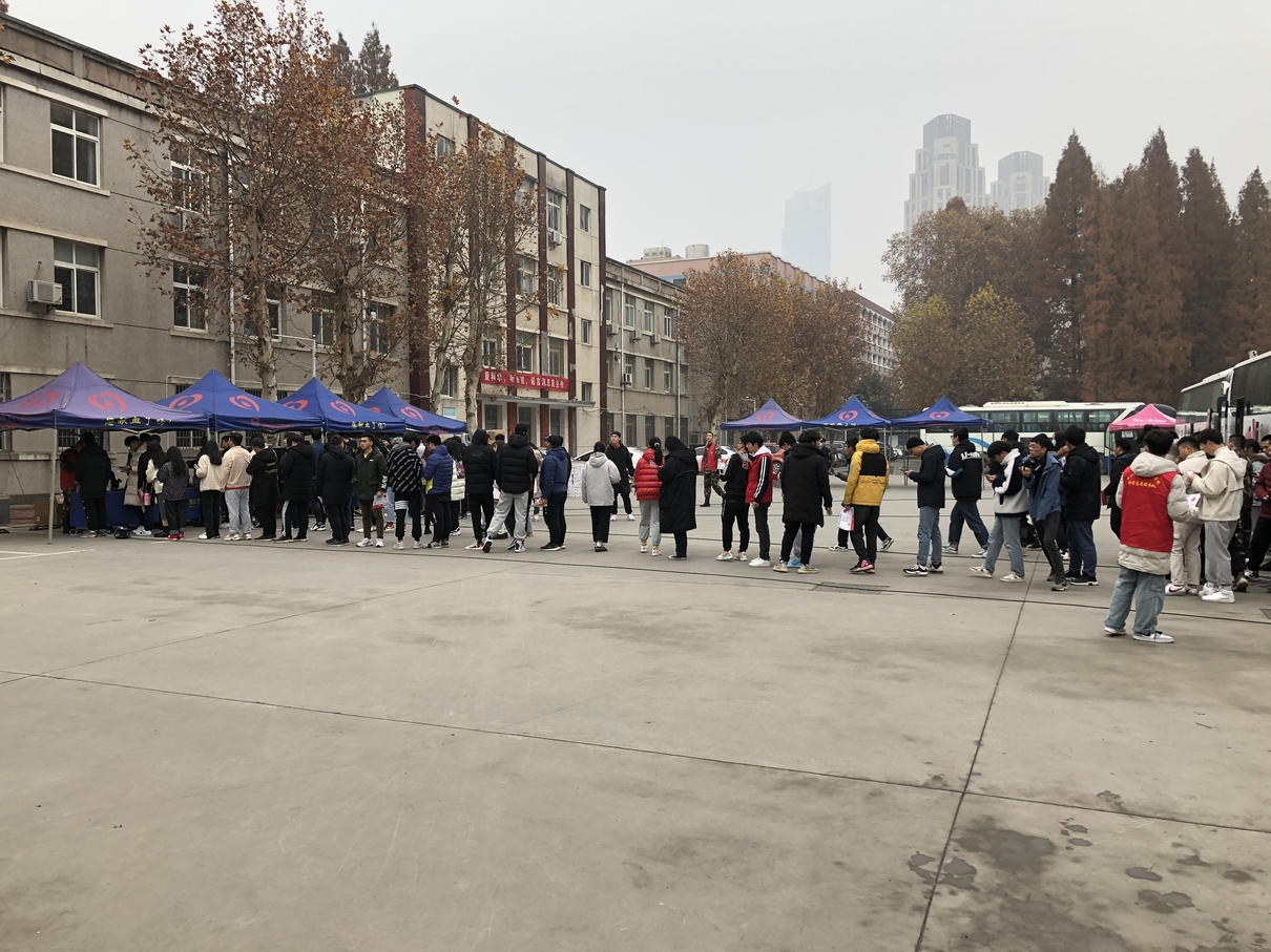 一大早,武汉血液中心的四辆献血车驶入武汉船舶职业技术学院,二十多位穿着红马甲的志愿者们小跑着簇拥过来,他们正是武汉船院“张宝”志愿服务队的志愿者们。
