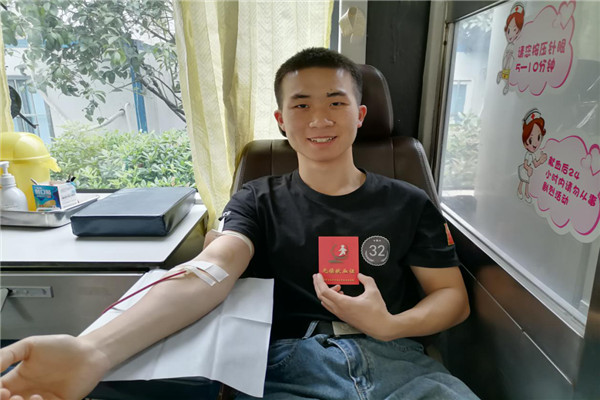就读于湖南省警察学院的肖泽峰假期回到家乡参与献血。“我之前在学校就有看到献血车,但因为有些害怕,所以就没有捐献,想想还是有点小遗憾。”肖泽峰说:“这次回到家乡,我立马就寻找献血点,我想挑战自己,也想为家乡患病的同胞出一份力。”通过血液检测合格后,肖泽峰捐献热血400毫升。