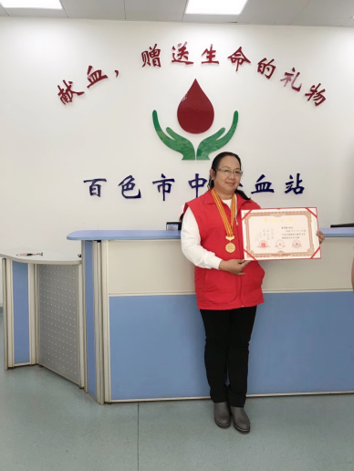 邹医生多年来除了工作认真负责外,还身体力行,默默坚持献血,目前全血捐献31次,血量11900毫升,单采血小板捐献26次,血量52个治疗量,累计献血总量22300毫升。先后2次获得国家卫健委、中国红十字总会、中央军委后勤保障部卫生局联合颁发的“全国无偿献血奉献奖金奖”。她说“血是生命的曙光,是点亮无数生命的火种,捐血救人是一件力所能及,又功德无量的事情,只要身体条件允许,会一直捐献下去。”