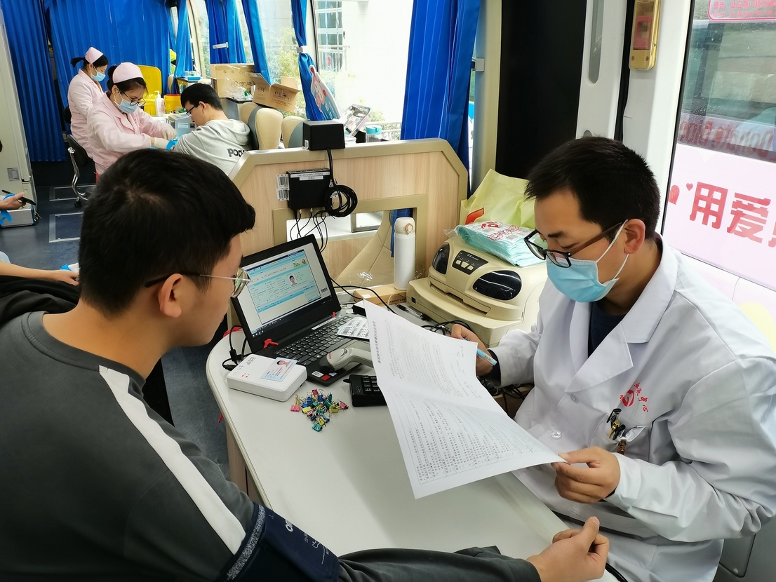 “今年的新冠疫情,医护人员冲锋在前,用行动守护群众的生命安全,我们大学生也应该‘撸起袖子’,贡献自己的力量。2020年,我们医大的献血人次和献血量又双双打破往年记录,大家共同用热情和热血书写爱国爱家之情,交出了一份令人骄傲的答卷。”负责本次献血活动的罗力栋同学介绍道。