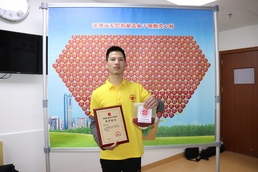 这位阳光、帅气的小伙子从2016年3月就开始在深圳参加无偿献血。2019年2月,在一次献血时,他了解到捐献造血干细胞可挽救白血病患者生命,当即报名加入中华骨髓库,成为一名造血干细胞志愿捐献者。2020年8月,经检索,他与一名需要造血干细胞移植的血液病患儿HLA(人类白细胞抗原)配型相合,他毫不犹豫的答应捐献。