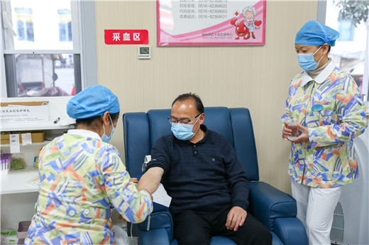 在随后召开的无偿献血座谈会上,胡书记语重心长地说:“无偿献血,需要更多的人参与进来,传递爱心。要进一步加强机关、社区和厂矿企业的宣传力度,让更多贾汪煤矿人的热血奉献社会。”毕站长对贾汪区人民医院对无偿献血工作的大力支持深表感谢。据王久胜院长介绍,该院一直以来热心公益事业。疫情期间,该院组织开展了“无偿献血周”活动,共300余名医务人员报名并成功捐献血液。近期又配合血液中心开展“第四届江苏省无偿献血宣传月”活动,有力支持了我市无偿献血工作。