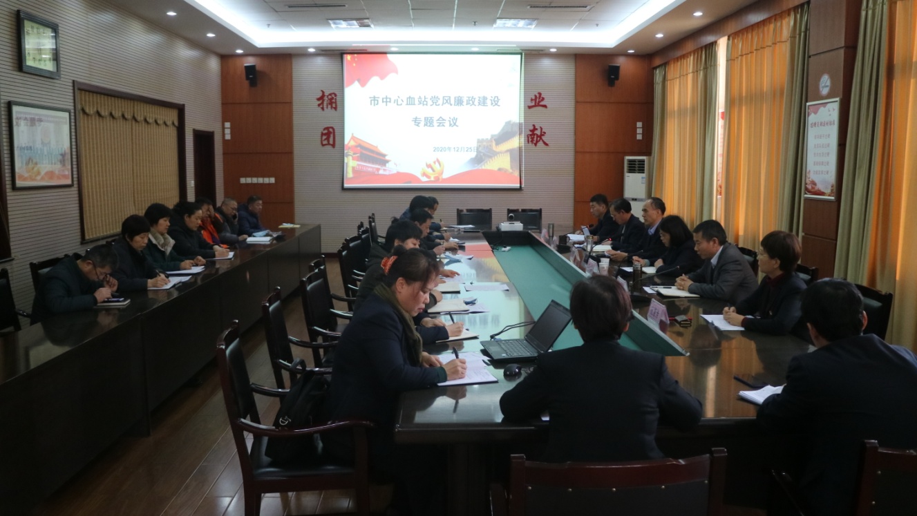 12月25日下午,淄博市中心血站召开2020年度党风廉政建设专题会议,市纪委监委驻卫生健康委纪检组组长沈永春、站领导班子、各支部书记及中层以上干部参加。