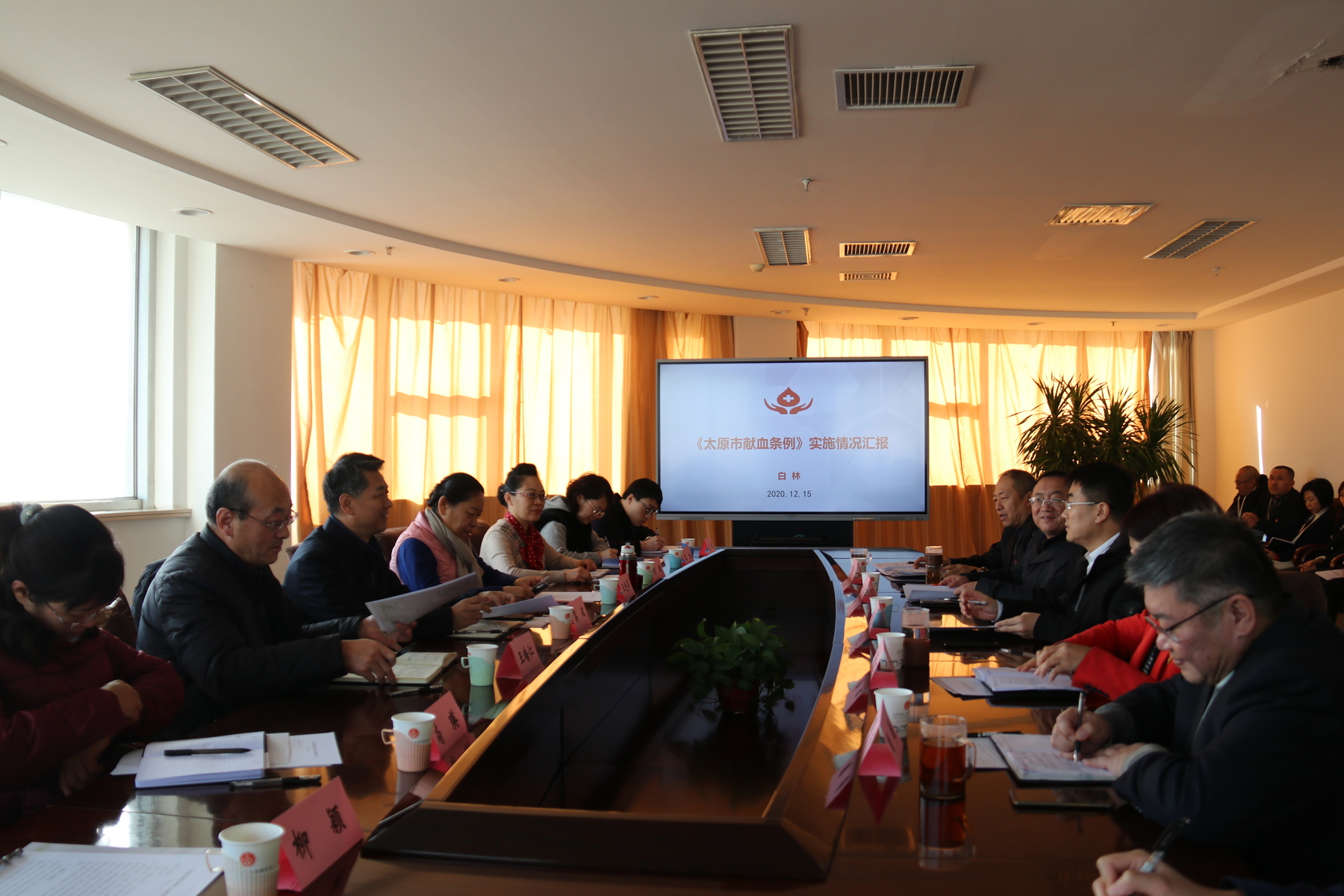 2020年12月15日上午,市人大常委会副主任高波、市人大常委会一级巡视员王爱萍带领市人大教科文卫委员会成员,在太原市卫健委副主任孙慧生的陪同下,到太原市血液中心就《太原市献血条例》贯彻落实情况进行实地调研。首先来到南宫献血屋,对我市街头献血环境和采血情况进行查看。