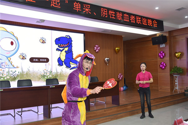 由血站党总支书记、站长刘昕晨(前排中)带领表演的手语舞《听我说谢谢你》