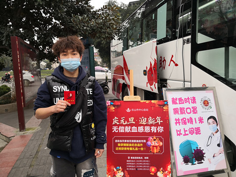 2021年新年来临之即,乐山市中心血站在街头献点开展了“庆元旦,迎新年无偿献血感恩有你”主题献血活动。活动期间,市中心血站为参加献血的献血者准备了一份新年礼物,感谢他们对乐山无偿献血事业的支持。