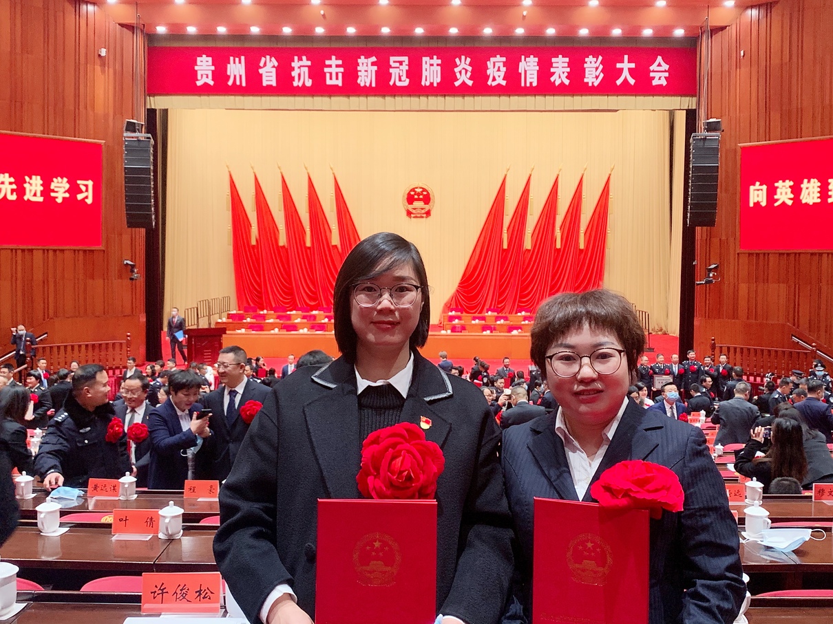表彰中,贵州省血液中心献血服务二科职工徐星星、秦怡2名同志获“贵州省抗击新冠肺炎疫情先进个人”荣誉称号。