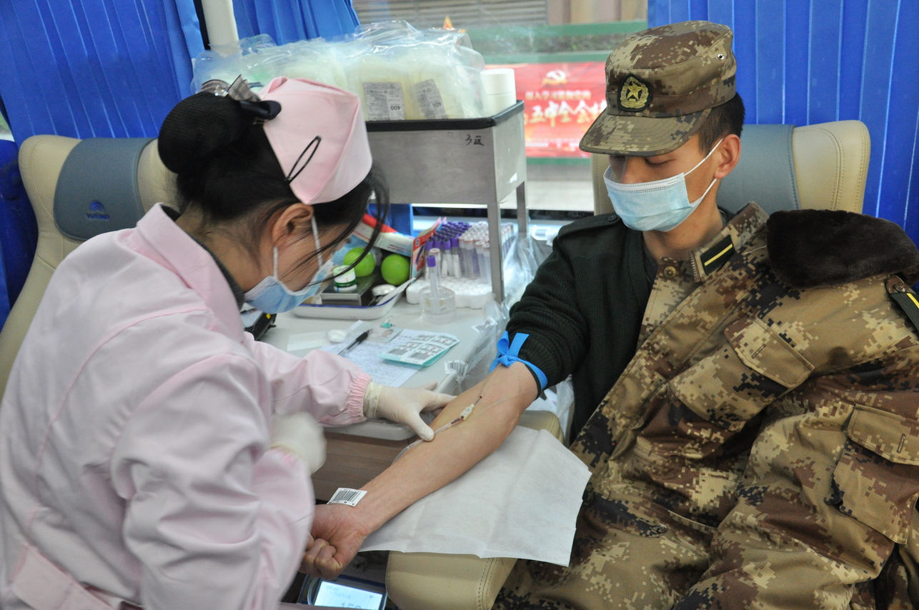 1月9日,陆军炮兵防空兵学院组织开展“战疫情 献爱心”无偿献血活动,为保障驻地医疗卫生事业的不断发展和人民群众的生命健康积极奉献力量。