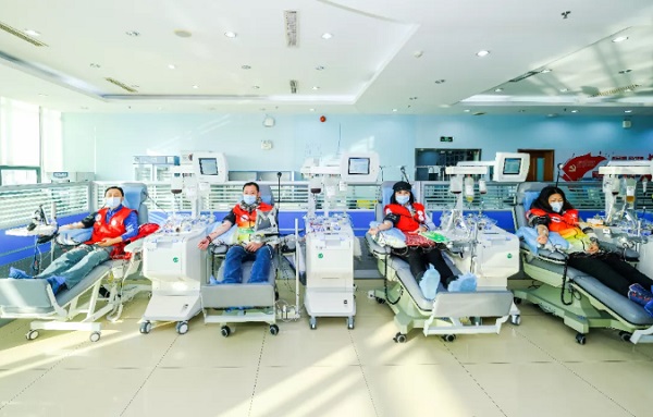 冬日献血 奉献有我 无偿献血志愿者集体捐献血小板