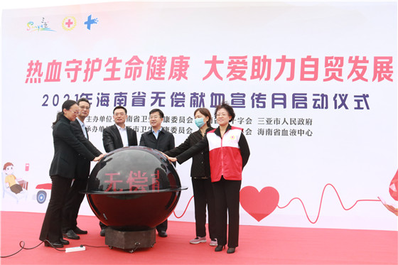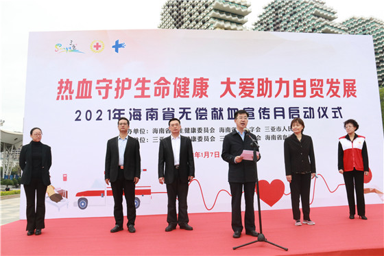 2021年1月7日上午,由海南省卫生健康委员会、海南省红十字会、三亚市人民政府主办,三亚市卫生健康委员会、三亚市红十字会、海南省血液中心承办的“热血守护生命健康 大爱助力自贸发展——2021年海南省无偿献血宣传月活动”启动仪式在三亚市美丽之冠时代广场隆重举行。