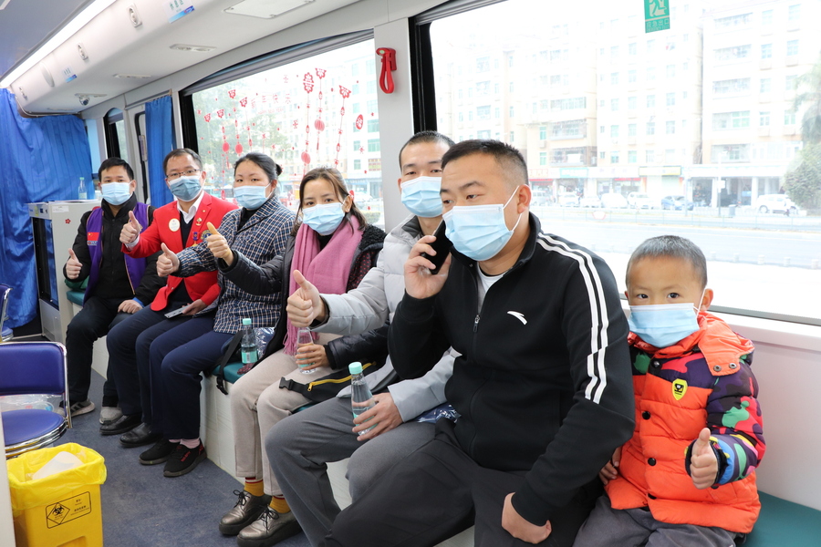 到了中午时分,献血车上的人潮一浪接着一浪。严寒冬日,最是需要人心来温暖——当日有64位热心市民贡献出22800ml热血,让我们倍感温暖!