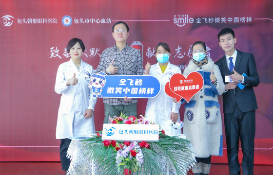 2021年1月9日,包头市中心血站联合包头朝聚眼科医院举办,致敬默默无闻的无偿献血志愿者“全飞秒微笑中国榜样-致敬默默无闻献血志愿者”公益手术直播活动。包头市中心血站、包头朝聚眼科医院领导工作人员,及无偿献血志愿者代表共同参加了此次活动。内蒙古网易新闻、优酷、全球直播、一直播、新浪微博、bilibili六大平台对此次活动全程直播。