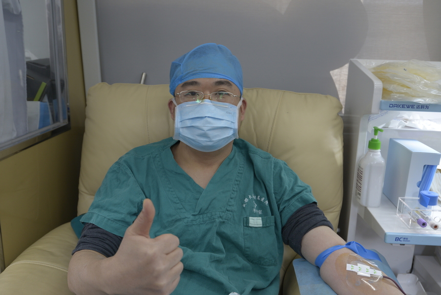 成都大学党委常委、附属医院党委书记孟晖带头献血并说道:“看到倡议后,我们就立即行动了。作为医务人员,我们的职责与使命就是救死扶伤,一方面是临床救治上我们会竭尽全力,另一方面当血液供应紧张时,我们更应献出一份力量。”