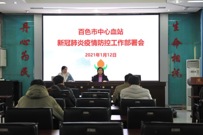 1月12日下午,百色市中心血站2021年疫情防控工作部署会在市中心血站6楼会议室召开。市中心血站党支部书记、站长梁朦尹及全体中层参加会议。
