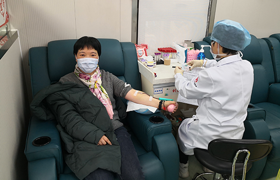 2020年3月6日,市中心血站党总支书记傅杏花在天一爱心献血屋献血