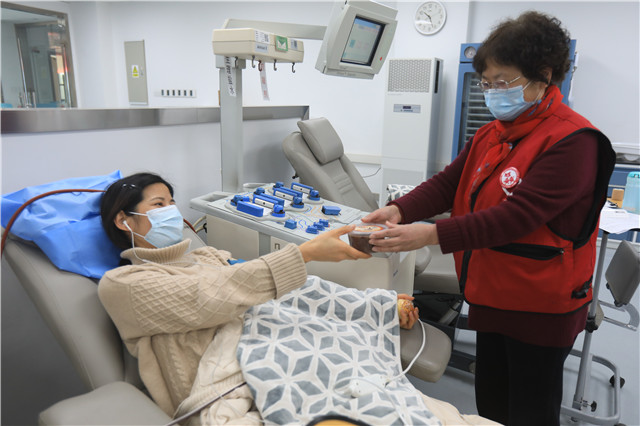 “每一次来省血液中心献血,看到工作人员和志愿者都觉得特别亲切,就像和家人见面一样,这种感觉真好。”第69次参加成分献血的叶华忠接过省血液中心工作人员送上的腊八粥时,这样说道。今天是腊八节,也是叶华忠成分献血间隔期到的日子,一大早,他从家中出发,来到省血液中心滨江院区,经过体检、检验等流程后,成功“上机”了, 距离他献血100次的小目标又近了一步。