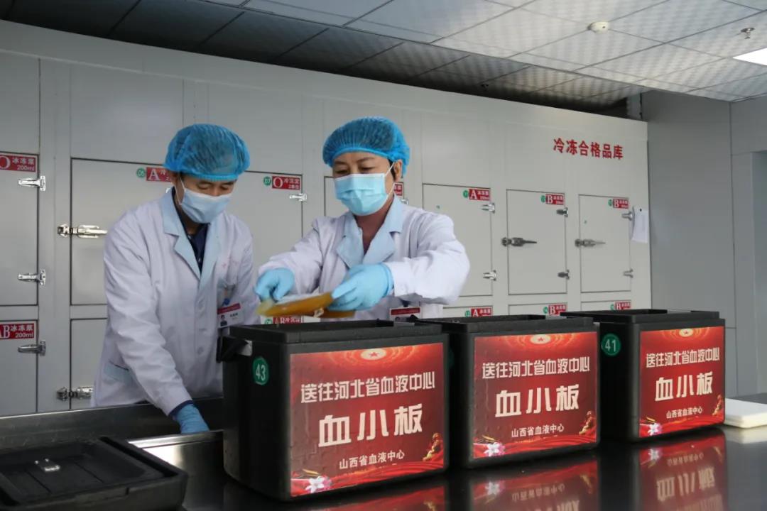 1月10日下午,经过出库、装箱后,由山西省血液中心主任白林、副主任周源带队,太原、临汾、运城3地采供血机构共同筹备的90个治疗量的血小板运往河北省石家庄市,并于盂县高速路口成功交接。