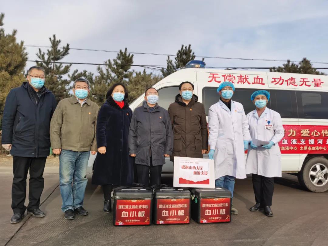 由于疫情影响,河北石家庄市血小板库存告急。1月10日,山西省血液中心火速伸出援手,协调太原、临汾、运城3地采供血机构,紧急调运首批90单位血小板运往石家庄市,并于盂县高速路口成功交接。