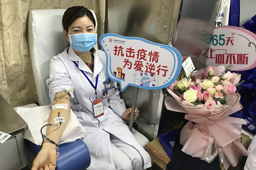 手捧一束鲜花的林文琴女士愉悦地走上了献血车,在登记献血信息时,电脑屏幕蹦出“该献血员今日生日,祝生日快乐!”鼓楼医院的摄影工作者随机上前抓拍了她的献血镜头,并请请她谈谈献血的感受,林文琴女士语气温柔道:“谢谢大家的祝福!现在疫情形势严峻,我作为医务工作者,不能退缩,理应站在最前线。同时,今天也是我的生日,而献血只会让今天变得更有非凡意义!”