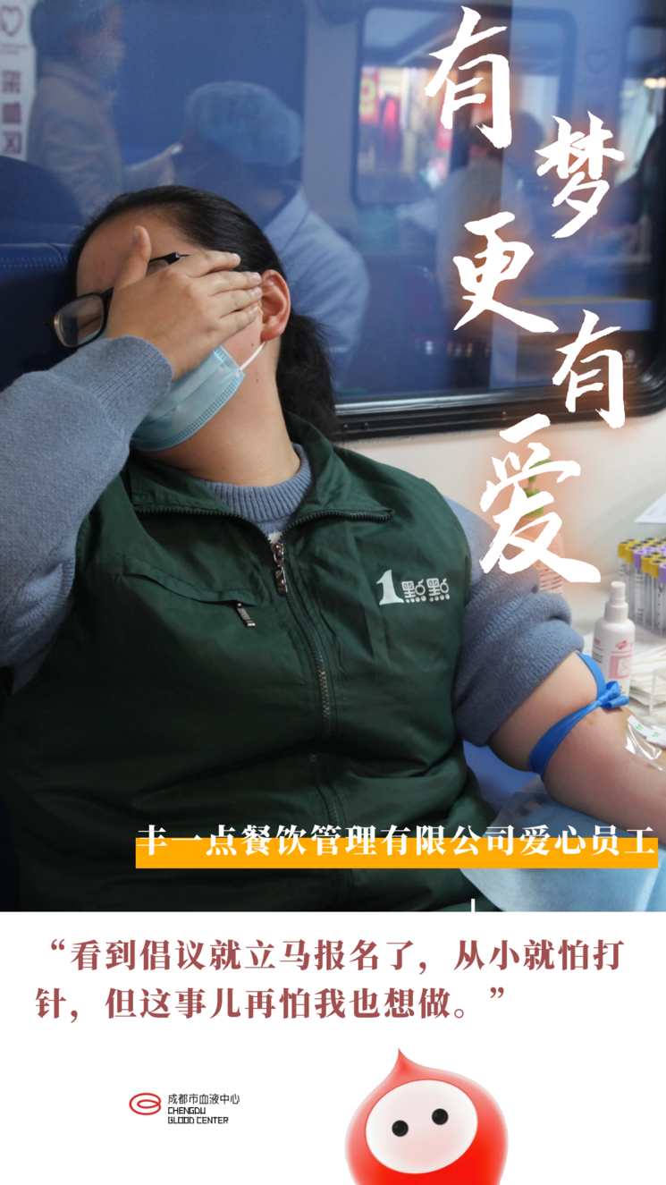 1月20日,成都丰一点餐饮管理有限公司共有20人捐献爱心血液6000毫升。