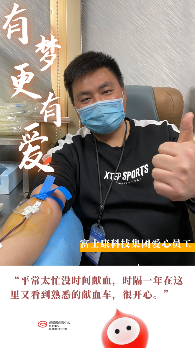 1月21日,富士康科技集团共有196人捐献爱心血液61200毫升。