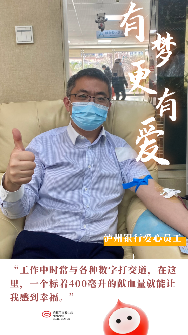 1月21日,泸州银行共有6人捐献爱心血液1700毫升。