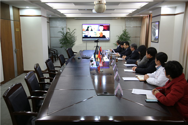 1月12日,中法输血合作交流视频会议在江苏省血液中心六楼会议室召开。省卫生健康委对外合作交流处处长李郁,省外办欧非处处长金尚军,省血液中心领导班子及相关科室负责人员出席会议,法国驻华大使馆社会事务参赞Mme Anne BRUANT-BISSON, 法国血液中心国合处主任Dr Thierry SCHNEIDER,法国血液中心中国项目主管Dr Wided Sghaier通过网络视频现场连线,会议由省血液中心主任、党委书记丁文艺主持。