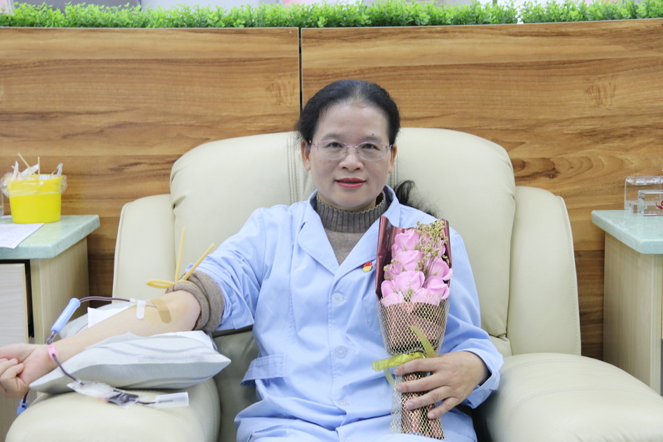 当天上午,血站二楼采血大厅成了血站无偿献血活动“专场”。一张张脸孔带着自信和微笑,一滴滴血液从血管输送到血袋,一袋袋热血凝聚了血站职工们的赤诚爱心,见证了血站职工们的无私奉献。站领导班子为当天参加献血的职工送上美丽花束,给职工点赞。