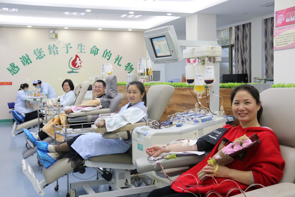因血管比较细不敢尝试的质控科张巧丽,在大家的鼓励下也第一次尝试捐献机采血小板,她表示,“有了今天的成功尝试,以后我会坚持献机采血小板的。”