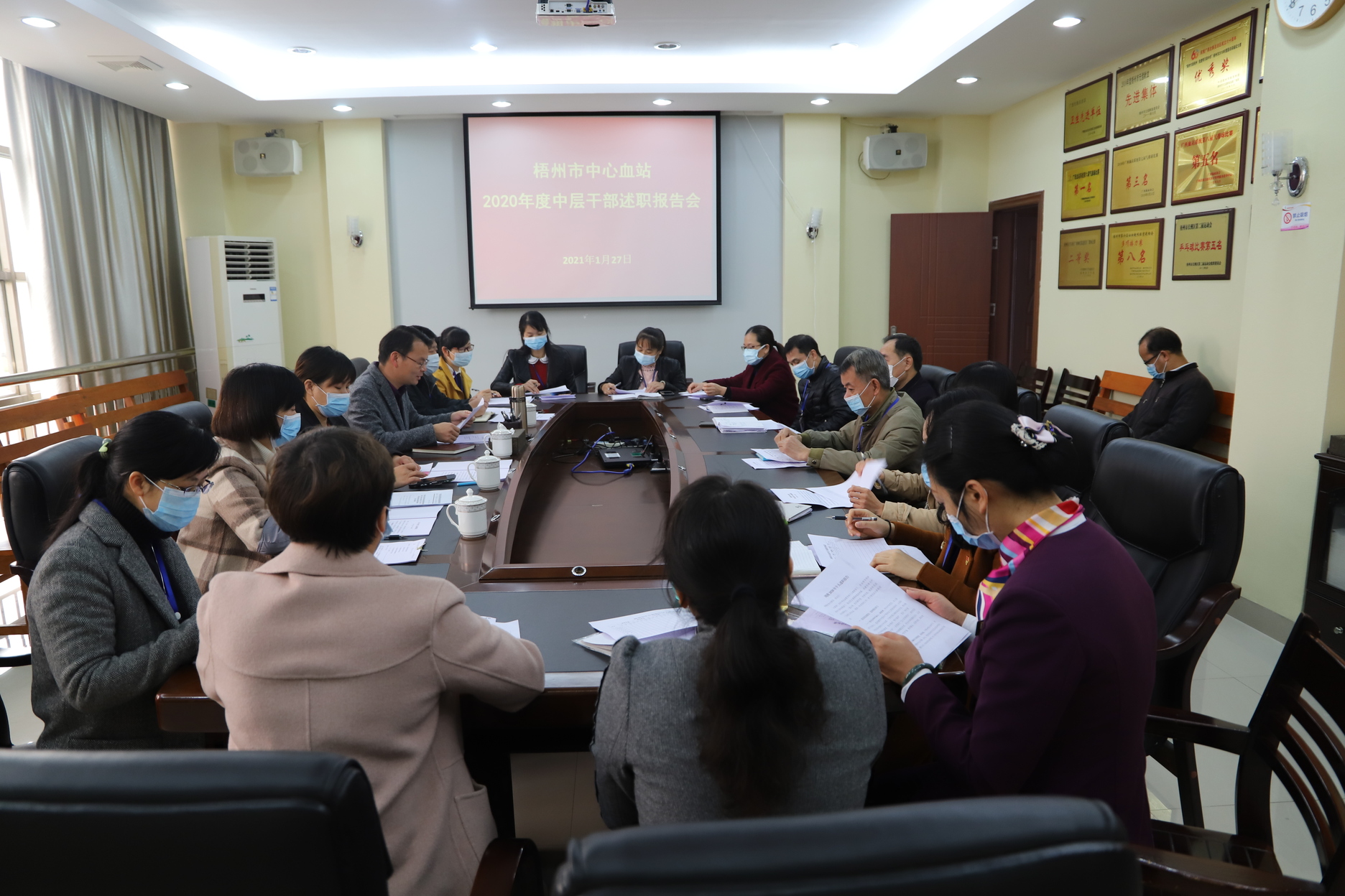 为全面掌握中层干部任期内履职能力和工作任务完成情况,强化干部队伍建设。1月27日,梧州市中心血站组织了2020年度中层干部述职报告会,会议由血站站长谢崇利主持。