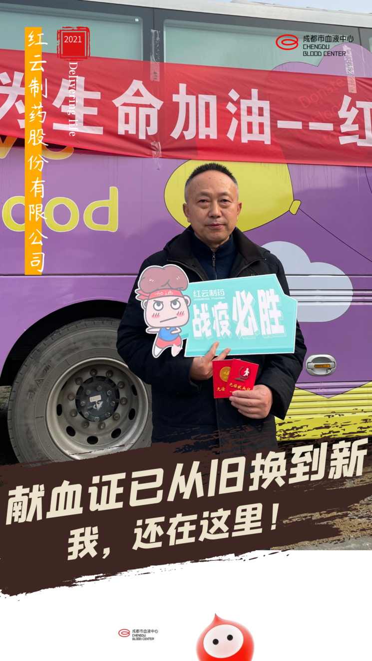红云制药股份有限公司共有36人捐献爱心血液9900毫升。