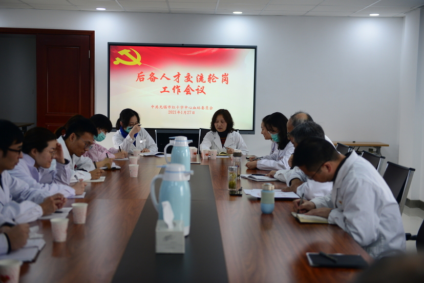 1月27日下午,无锡市中心血站召开后备人才轮岗锻炼工作会议。站党委书记黄晓阳,副站长夏卫、刘晓伟,相关科室负责人及后备人才参加会议。此次会议旨在进一步加快血站后备人才综合素质提升,构建合理的人才弱队,为血站“十四五”发展提供人才储备。