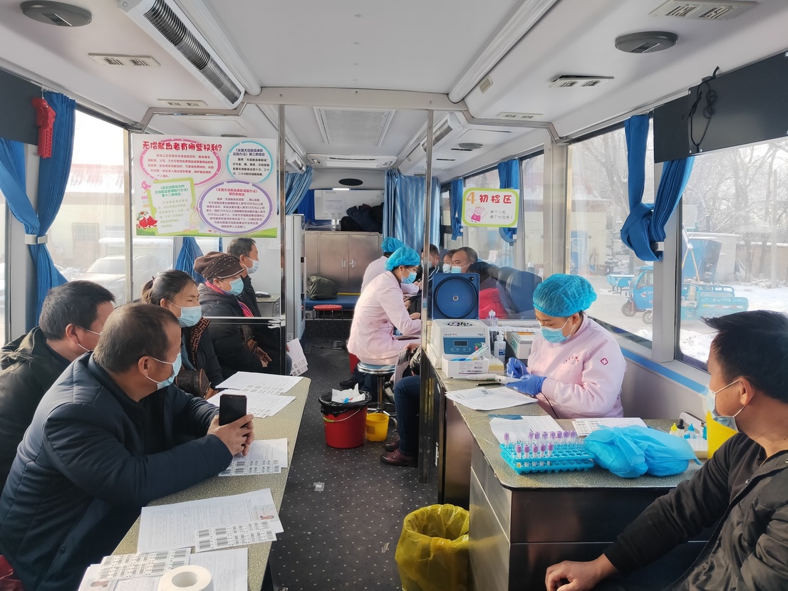 早晨10点半,血站捐血车准时停靠在佃坝镇卫生院门前,工作人员立即准备各岗位所需的物料,迅速进入工作状态。与以往不同的是,血站工作人员和该卫生院护士要对前来献血的人员进行疫情防控检查,戴口罩、测体温、手消毒、查行程码,并且排队时要拉开间距,做到不扎堆不聚集。镇干部职工及村民们也非常理解和配合疫情防控工作。完成检查后,大家井然有序地进入到下一个环节。体检过程中,有很多村民表示:“去年受疫情影响,全民体检工作被拖延,这次能献血就当是对自己身体的一次检查,挺好的,献血是我们习以为常的事儿了,不献血反倒不适应了”,在旁的其他村民呵呵呵地也表示赞同。