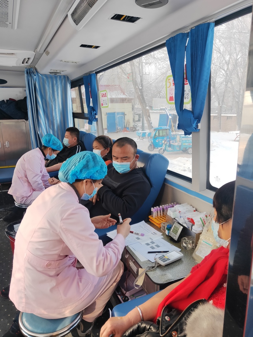 院子里被皑皑的白雪笼罩着,大厅内献血的气氛却是如此温暖。淳朴的人们体检合格后不争不抢地一个一个走上捐血车内,撸起袖子露出坚实的臂膀奉献自己的一份爱心。献血结束后,在获得无偿献血证时,血站还准备了一份精美的礼品作为新年的第一份礼物送给献血者。